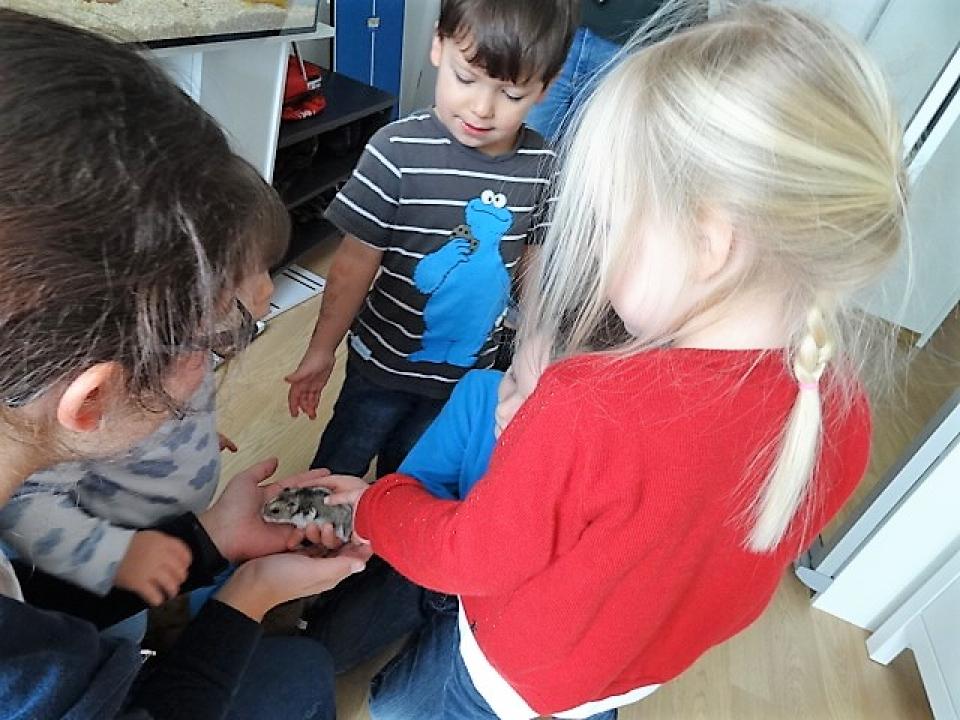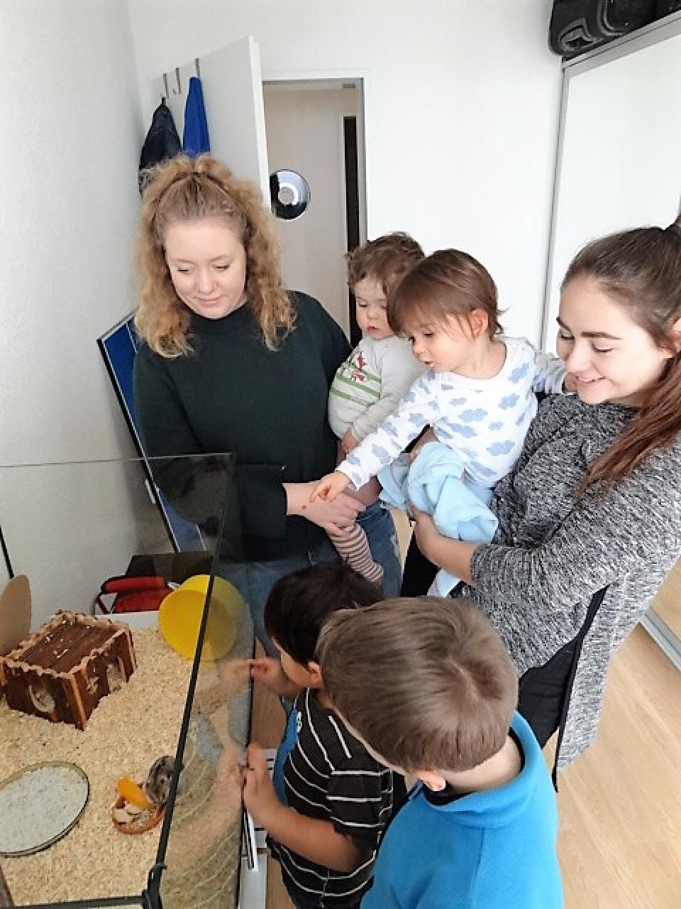 Kaum in der Wohnung angekommen, verstreuten sich die Kinder in den Räumen. Anschliessend machte Fabienne mit uns eine Wohnungstour. Eines der spektakulärsten Dinge war der kleine Hamster „Rino „, den die Kinder auf der Hand halten durften und gestreichelt haben.