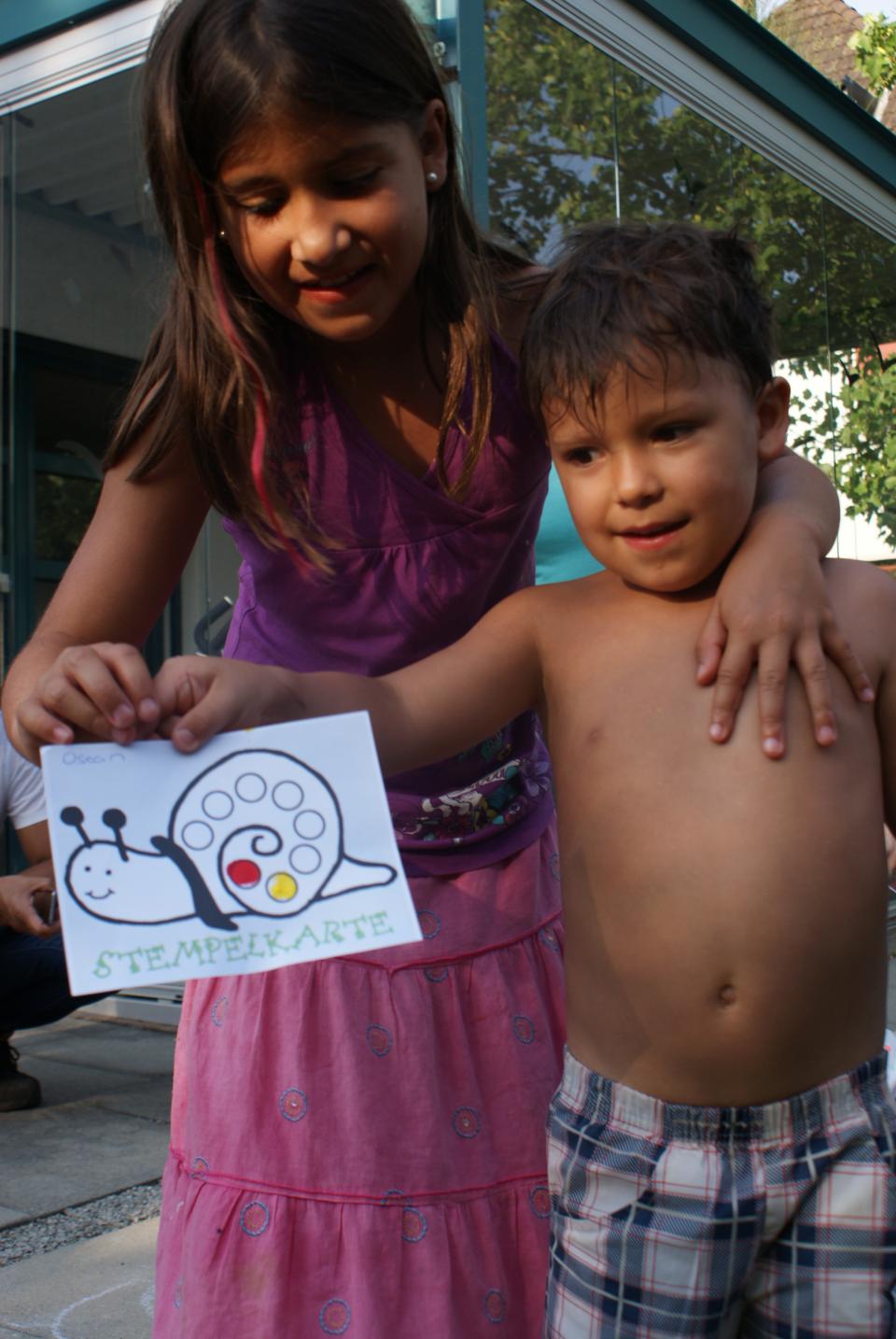Die Kinder konnten an diesem Abend viele verschiedene Spiele erleben und sich mit ihrer Schnecken-Stempelkarte Punkte sammeln. Es gab verschiedene Posten die es zu bewältigen gab. Man konnte Seilziehen, im Wasserbecken plantschen und Säckli werfen. Auf unsere Lounge im Sandkasten konnten die Mamis und Papis ihren Kindern beim Spielen zuschauen und sich unterhalten.