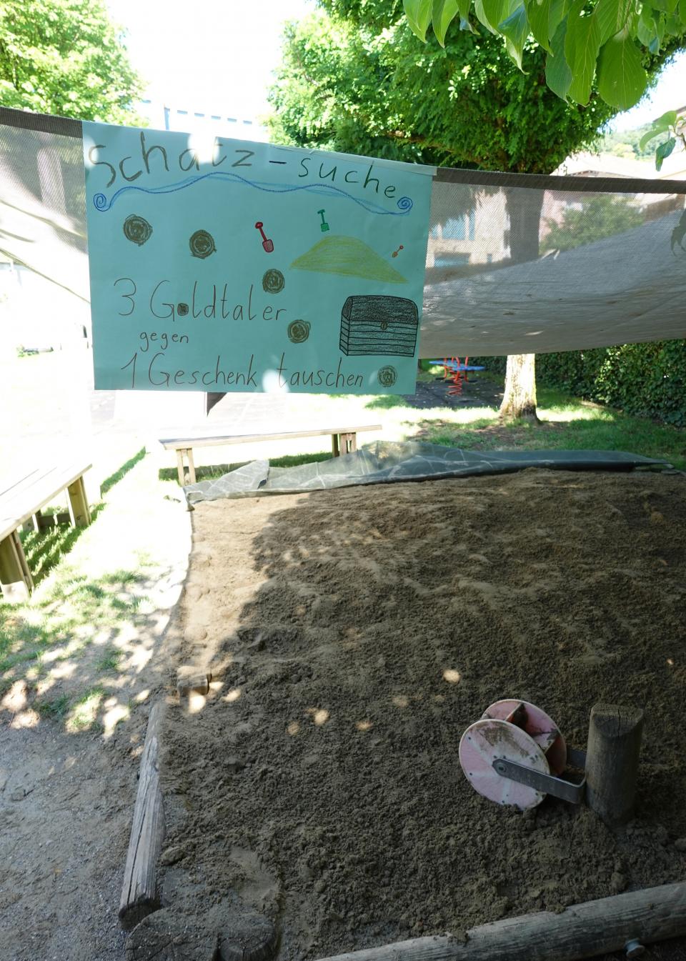 Es gab einige Überraschungen am diesjährigen Grillfest. Die Kinder konnten Schatz-Münzen im Sandkasten suchen und sich mit den Münzen einen Erlös aus der Schatzkiste kaufen.
