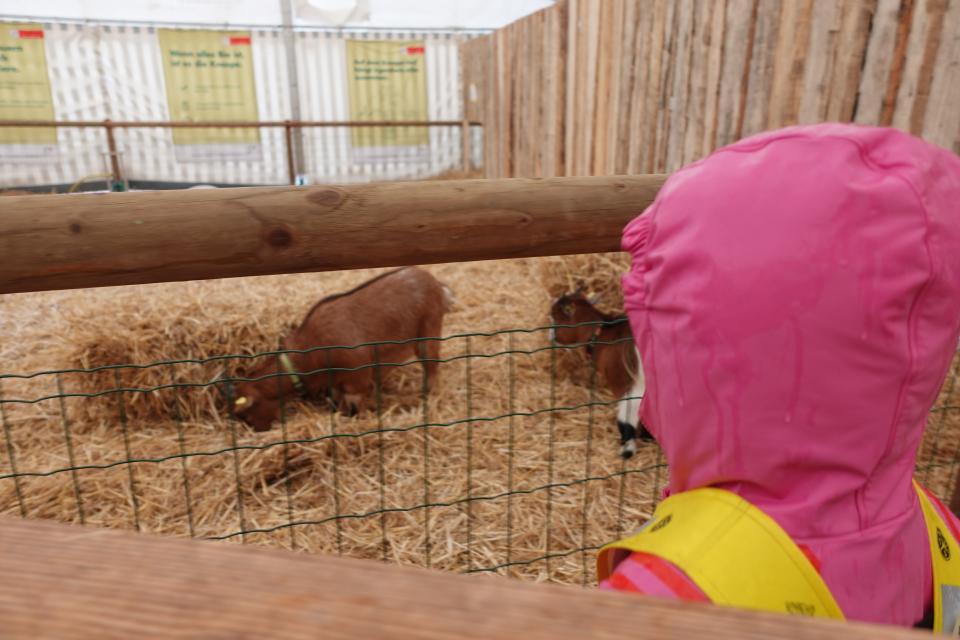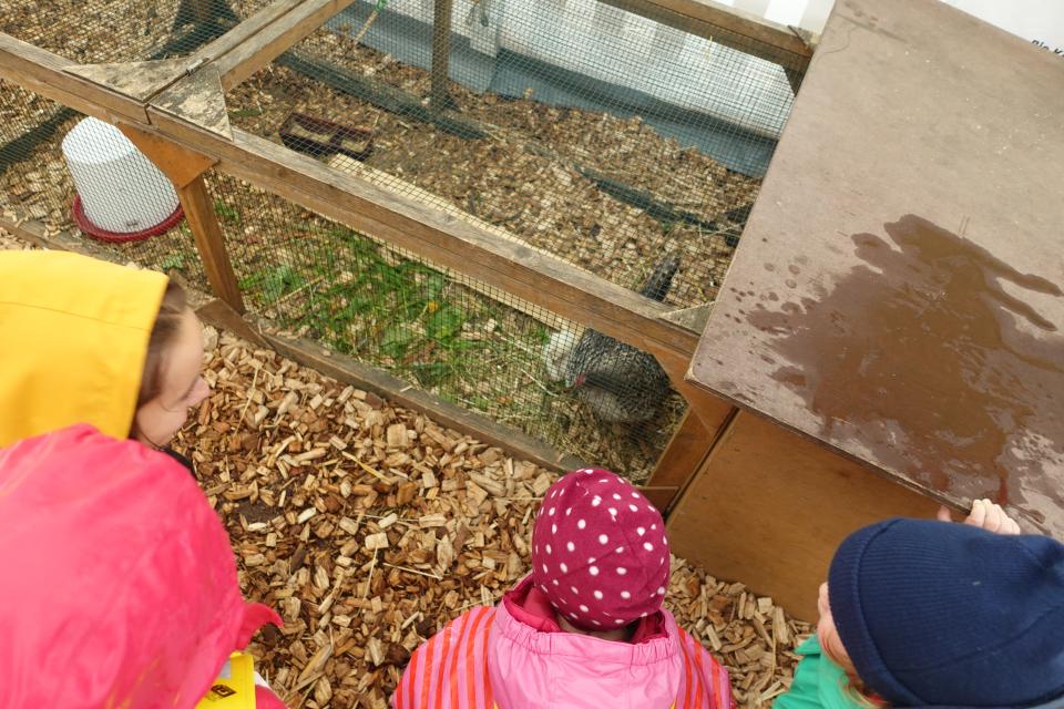 Auf dem Heso Gelände wurden wir schon mit dem «Söili rennen» begrüsst, danach schauten wir noch nach den Ziegen, die man streicheln durfte. Auch ein Huhn mit ihren «Bibelis» wurde entdeckt und ganz genau unter die Lupe genommen.
