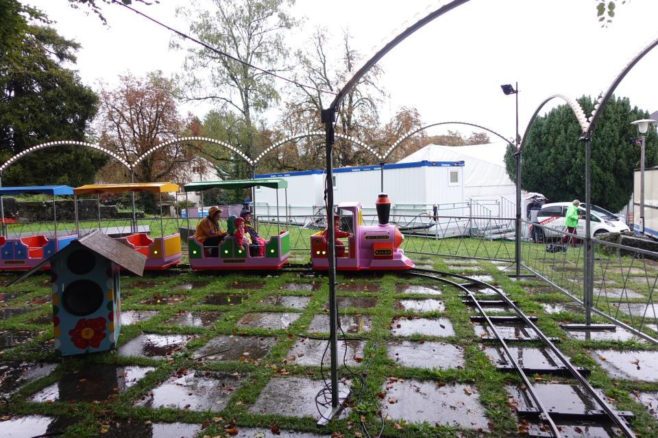 Eingepackt in den Regenkleider stiegen wir in den Zug und konnten während der Zugfahrt von Olten nach Solothurn vieles entdecken, das Schloss in Oensingen wurde lange bestaunt. In Solothurn angekommen erwartete uns ein kurzer Fussmarsch zum Festgelände der Herbstmesse.