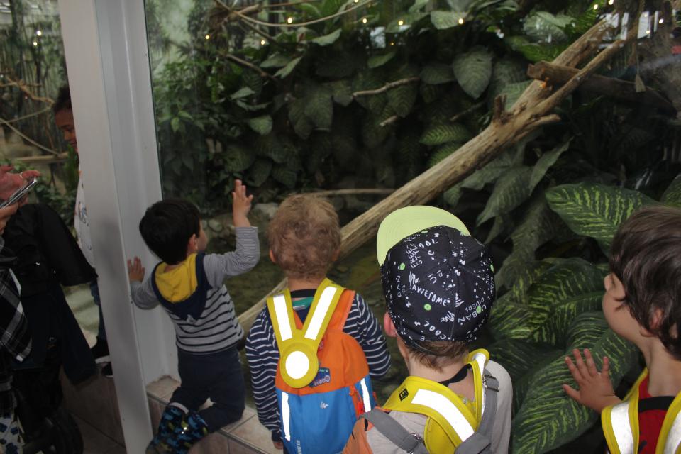 Nach langem und geduldigem Warten war es endlich wieder so weit: Die Kita Sonnhalde machte einen Ausflug! Früh morgens machten wir uns auf den Weg zum Bahnhof und stiegen dort in den Zug Richtung Bern ein. Dort galt es für uns eigentlich umzusteigen, doch das erste Missgeschick liess nicht lange auf sich warten und so kam es dazu, dass wir die Gleisänderung übersahen und unseren Anschluss Zug verpassten. Dies hielt uns jedoch nicht davon ab, unseren Ausflugstag in vollen Zügen, oder eben ausserhalb des richtigen Zuges, zu geniessen! Also machten wir uns auf den Weg zur grossen Schanze, wo wir uns auf dem Spielplatz austoben konnten. Eine Stunde später machten wir uns dann auf und wir reisten das letzte Stück zu unserem Tagesziel, dem Papiliorama in Kerzers. Dort angekommen war der Hunger schon gross, weshalb wir zuerst das Mittagessen genossen, um gestärkt in das Nachmittagsprogramm zu starten. Nach dem Essen eroberten wir als erstes den grossen Naturspielplatz und powerten uns nach dem langen Sitzen ausgiebig aus. Anschliessend machte sich jede Gruppe einzeln auf den Weg. Besonders die vielen bunten Schmetterlinge waren eindrücklich für die Kinder, aber auch die Fledermäuse und die anderen nachtaktiven Tiere wurden mit grossen Augen bestaunt. Trotz des eher bescheidenen Wetters genossen wir die sehr tropischen Temperaturen. Man konnte zwischendurch glatt vergessen, dass es Draussen regnete. Die Zeit war leider viel zu schnell verflogen und so machten wir uns Müde auf den Nachhauseweg, wo wir uns einander von unseren Erlebnissen berichten konnten.